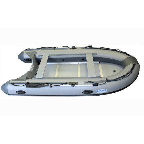 Dulkan 420 — модель, которая уже за 15 лет эксплуатации успела себя зарекомендовать в сложных условиях Балтийского моря, где погода может меняться стремительно быстро – от полного штиля до сурового шторма. Большая ширина кокпита и увеличенный диаметр баллона до 50 см, 5 воздуходержащих отсеков, дают возможность владельцам такого судна, даже после загрузки снаряжения по максимуму, чувствовать себя на борту очень комфортно. V – образная геометрия днища обеспечивает корпусу лучшие ходовые характеристики при движении судна по волне. Лодка оснащена уникальной конструкцией транца, обеспечивающей быструю легкую направляющую способность и точную балансировку румпеля. Привальный брус защищает борта от истирания, сидения скользящие по направляющим, что позволяет передвигать их без особого труда по всей рабочей площади.